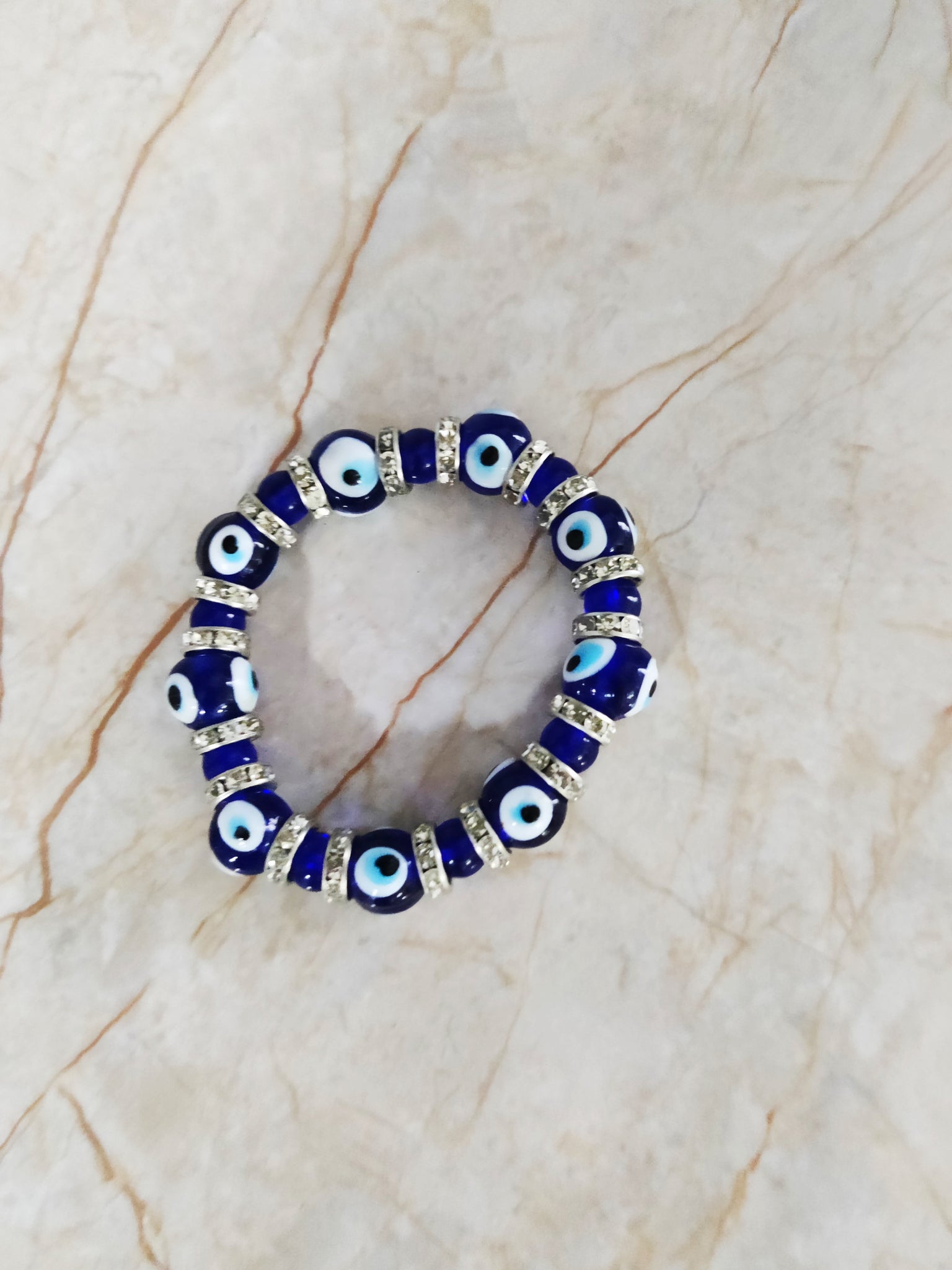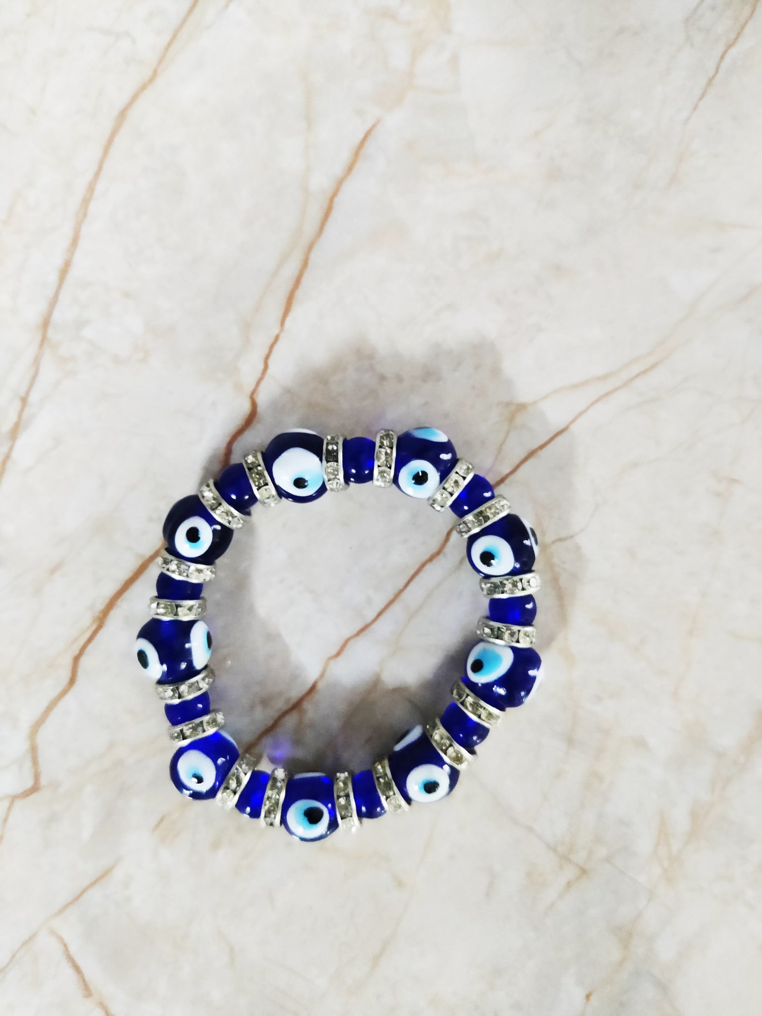 This crystal bracelet contains evil eye beads that are worn to protect one from evil looks. These attractive beads look very classy and give a fancy look.
