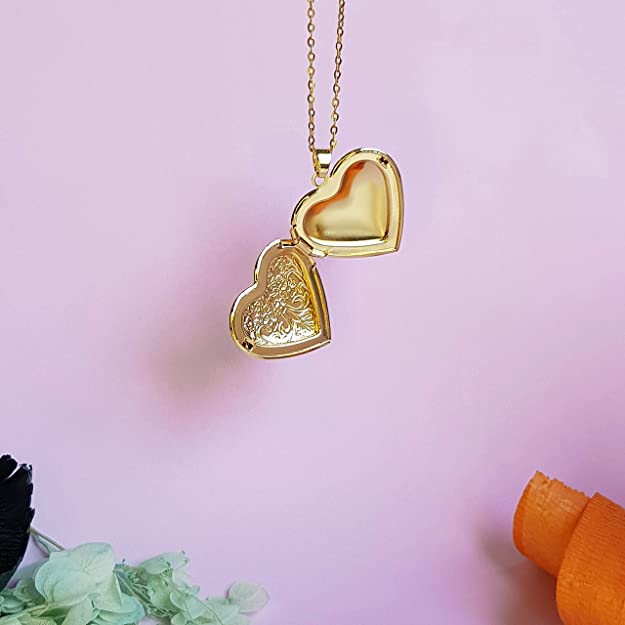 Valentine Gift For Women And Girls Real Gold Plated Heart Photo Memory Locket Pendant Necklace With Chain