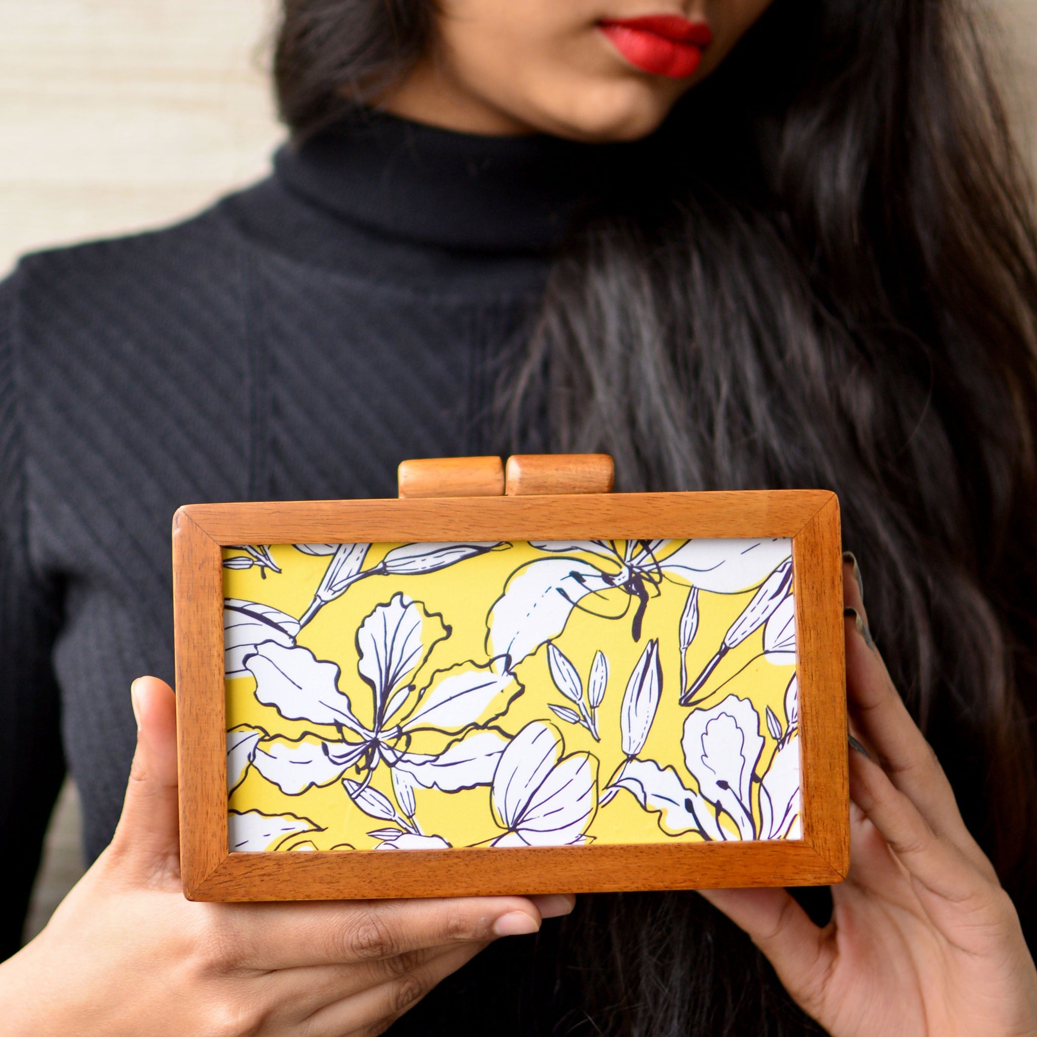 White Yellow Floral Forest Wood Clutches